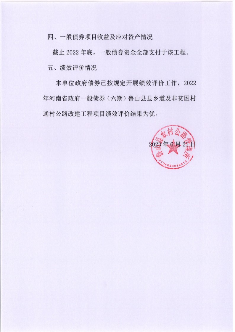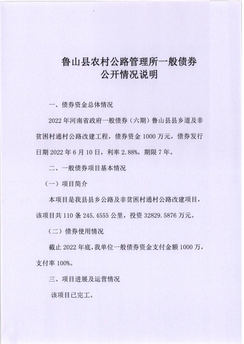 鲁山县农村公路管理所一般债券公开情况说明