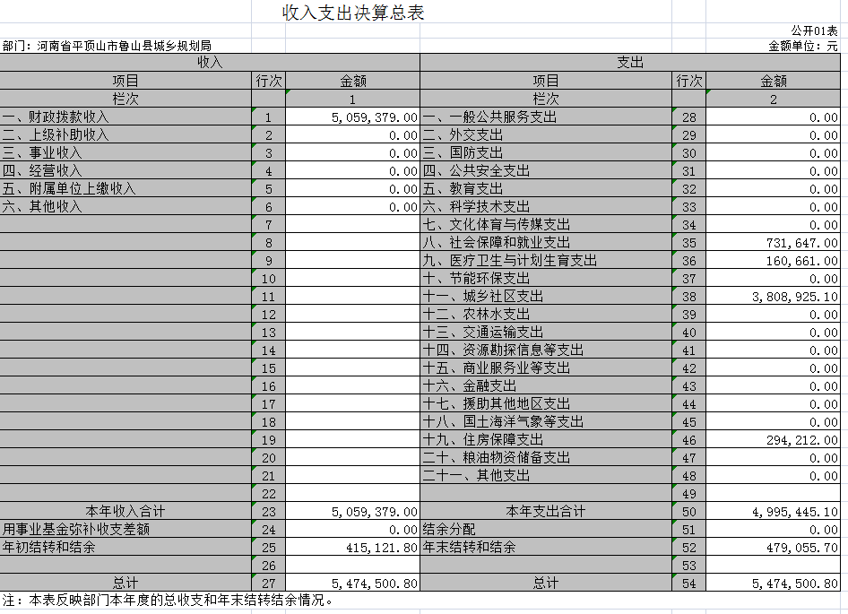 鲁山县城乡规划局2017年度部门决算