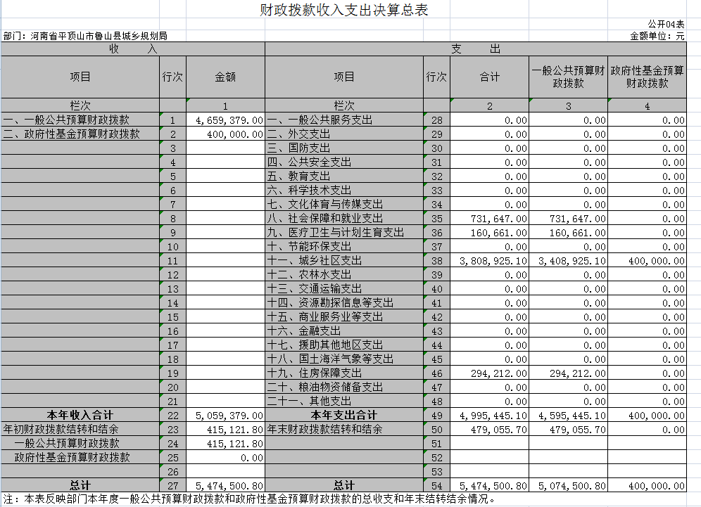 四、财政拨款收入支出决算总表