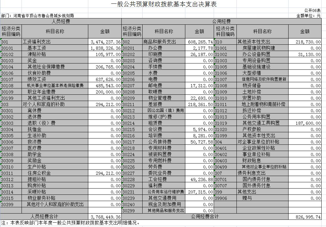 六、基本支出:指为保障机构正常运转、完成日常工作任务而发生的人员支出和公用支出。
