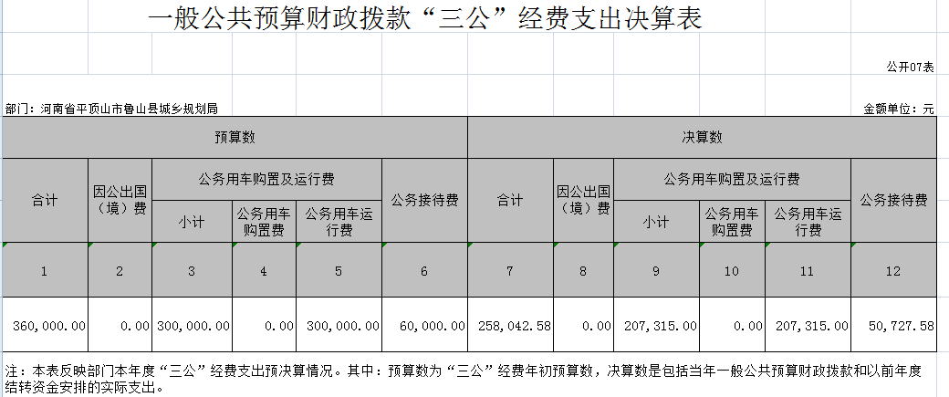 七、一般公共预算财政拨款“三公”经费支出决算表